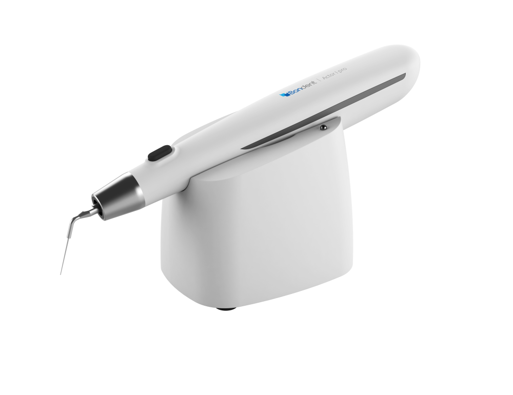 moderný ultrazvukový prístroj určený pre zubných lekárov, ktorý podporuje ošetrenie koreňových kanálikov. Vďaka použitiu ultrazvukovej kavitácie účinne čistí koreňové kanáliky, odstraňuje baktérie a nečistoty, čo zaisťuje presnosť a bezpečnosť zákroku. Bondent Actor Pro I je nepostrádateľným nástrojom pri liečbe koreňových kanálikov, ktorý zlepšuje účinnosť čistenia a aktivácie tekutín v koreňových kanálikoch, čím zvyšuje kvalitu endodontického ošetrenia. Vďaka modernej technológii, výnimočnej funkčnosti a inovatívnym riešeniam je Bondent Actor Pro I cennou podporou pre každého zubára.