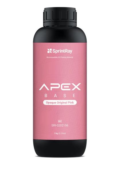 SprintRay APEX Base je nanokeramická, biokompatibilná živica triedy II s certifikátom FDA, určená na 3D tlač snímateľných báz zubných protéz. Využíva inovácie biomateriálov na zlepšenie 3D výroby a opravy úplných a čiastočne snímateľných zubných protéz a bázových platničiek. APEX Base, poháňaná patentovanou technológiou NanoFusion™ a prekonávajúca normy ISO pre vysokú odolnosť voči nárazu, je napustená optimálnym množstvom keramiky, vyniká v odolnosti voči lomu a opotrebovaniu a prekonáva konkurenčné 3D tlačené a frézované materiály vo viacerých ohľadoch. APEX Base sa vyznačuje vylepšenou priesvitnosťou pre konkurencieschopné estetické 3D tlačené zubné protézy. Súčasť plne integrovaného digitálneho pracovného postupu SprintRay, ktorý zahŕňa služby návrhu zubných protéz na mieru na požiadanie a špičkový ekosystém 3D tlače.