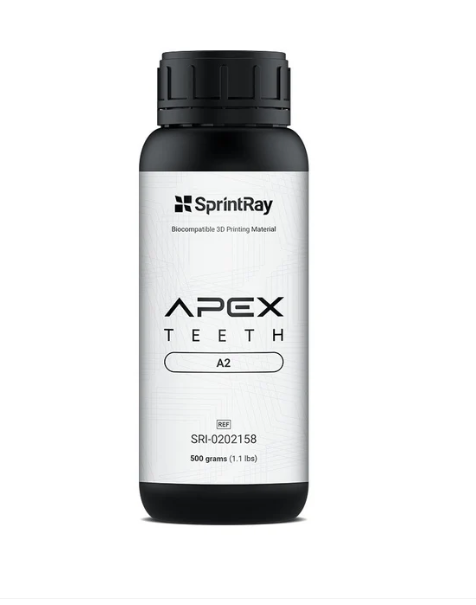 SprintRay APEX Teeth: biokompatibilná živica na 3D tlač zubných protéz. Prekračuje vysoko odolné normy ISO pre mechanické vlastnosti. Odtiene: A1, A2, B2 a Bleach.