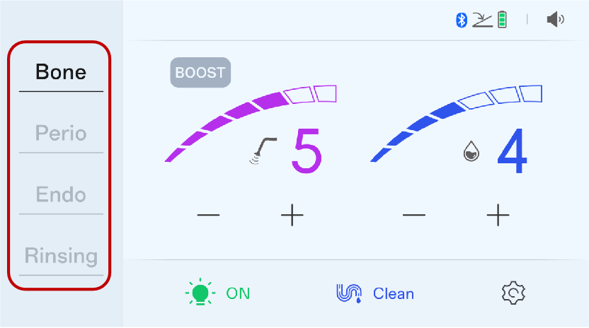 Režim kostnej chirurgie, režim parodontálnej liečby, režim endodontickej liečby
