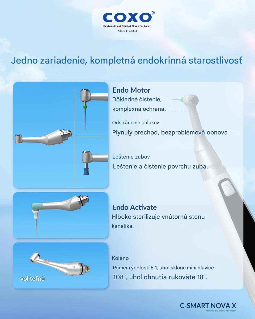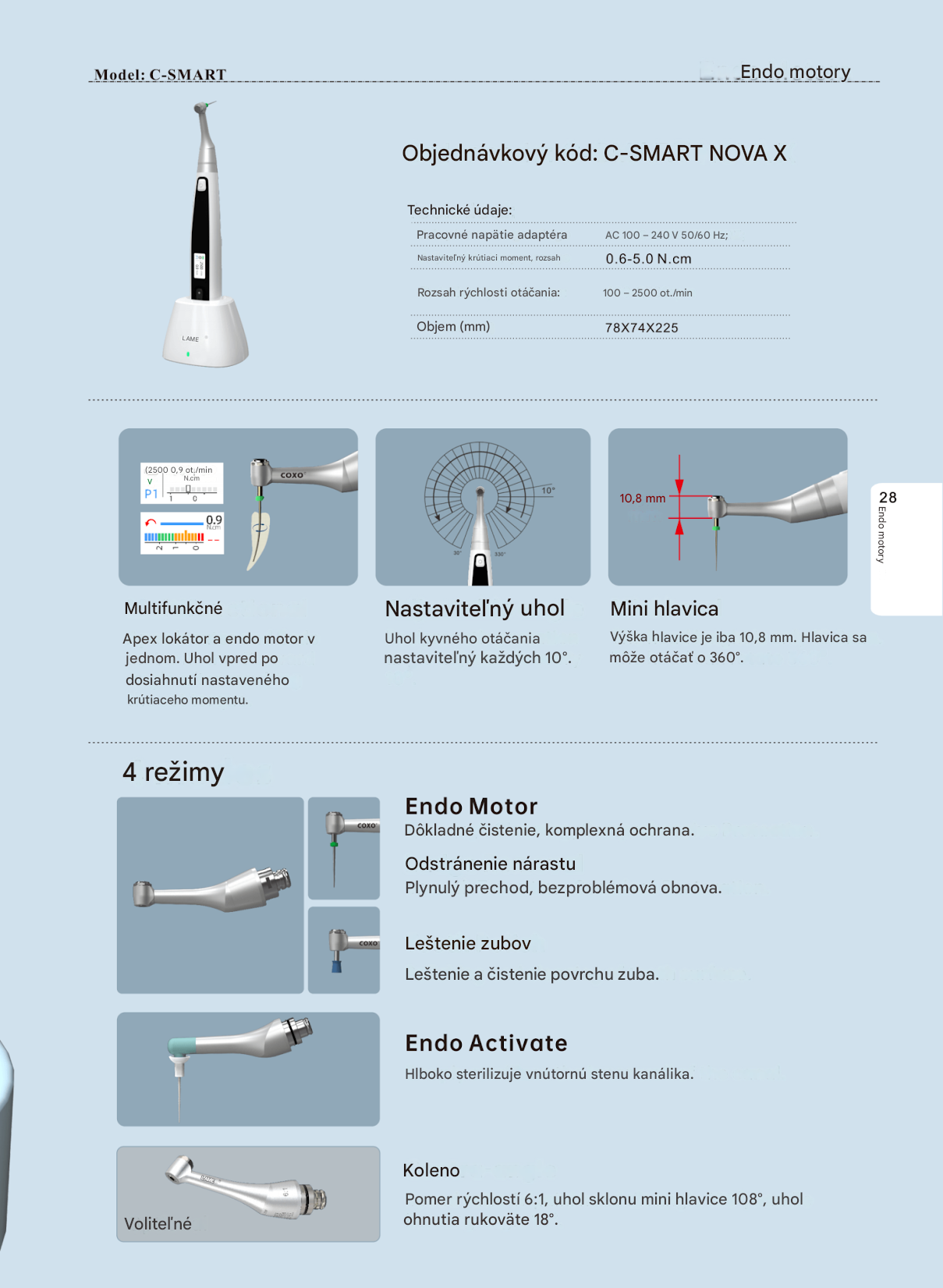 10) Bohaté pomocné funkcie: kalibrácia motora, automatické spustenie koreňového kanálika atď.