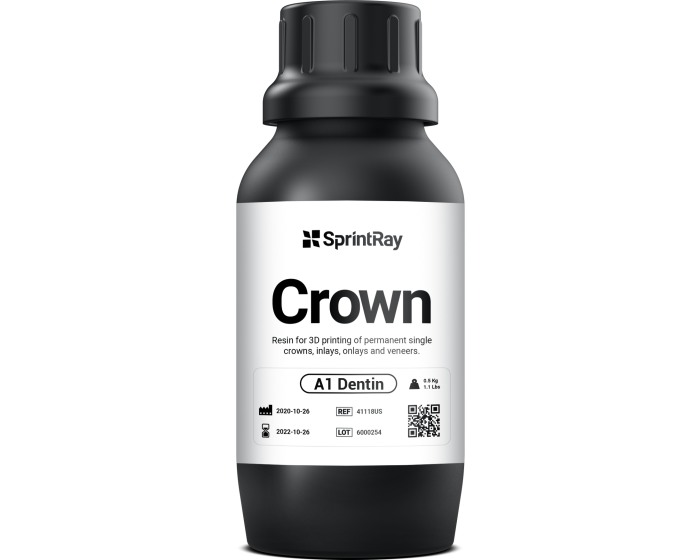 SprintRay Crown je hybridný materiál s keramikou plnený na 3D tlač jednotlivých koruniek, inlejí, onlejí a fazet. Tento materiál sa ľahko opracúva a leští tradičnými metódami a ponúka vynikajúcu estetiku, ktorá splýva s existujúcimi zubami. Vysoká pevnosť a odolnosť voči opotrebovaniu robia zo SprintRay Crown obľúbený materiál pre reštauračnú 3D tlač. Keďže SprintRay Crown má schválenie FDA 510(k) a spĺňa všetky požiadavky na zdravotnícku pomôcku triedy II, môžete sa na túto živicu spoľahnúť.