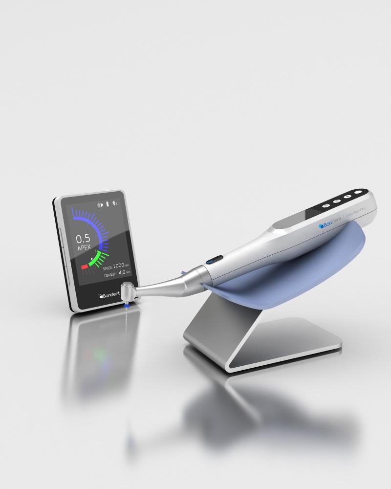 - Vybavený 2 bezdrôtovými prenosovými modulmi pre prácu s externým apex lokátorom Root Apex a bezdrôtovým nožným pedálom.