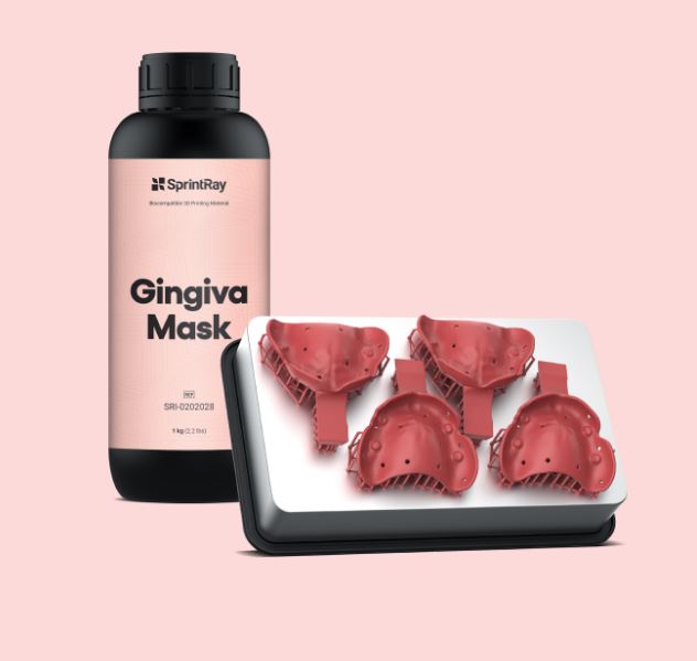 Gingiva Mask je flexibilný, no zároveň odolný materiál určený na použitie s modelovacími materiálmi SprintRay, ktorý napodobňuje vzhľad a pocit prirodzeného tkaniva ďasien. Gingiva Mask má vysokú odolnosť proti roztrhnutiu a ľahko sa orezuje pre optimálne plánovanie rekonštrukcie.