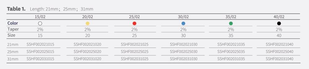 Dodáva sa v rôznych veľkostiach od #6, #8, #10, #15-#40, #45-80 a je k dispozícii v dĺžkach 21 mm, 25 mm a 31 mm.