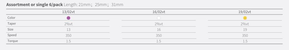 Dostupné v dĺžkach 21 mm, 25 mm a 31 mm, Assorted 2*13/02vt, 2*16/02vt, 2*19/02vtt 21/25/31 mm