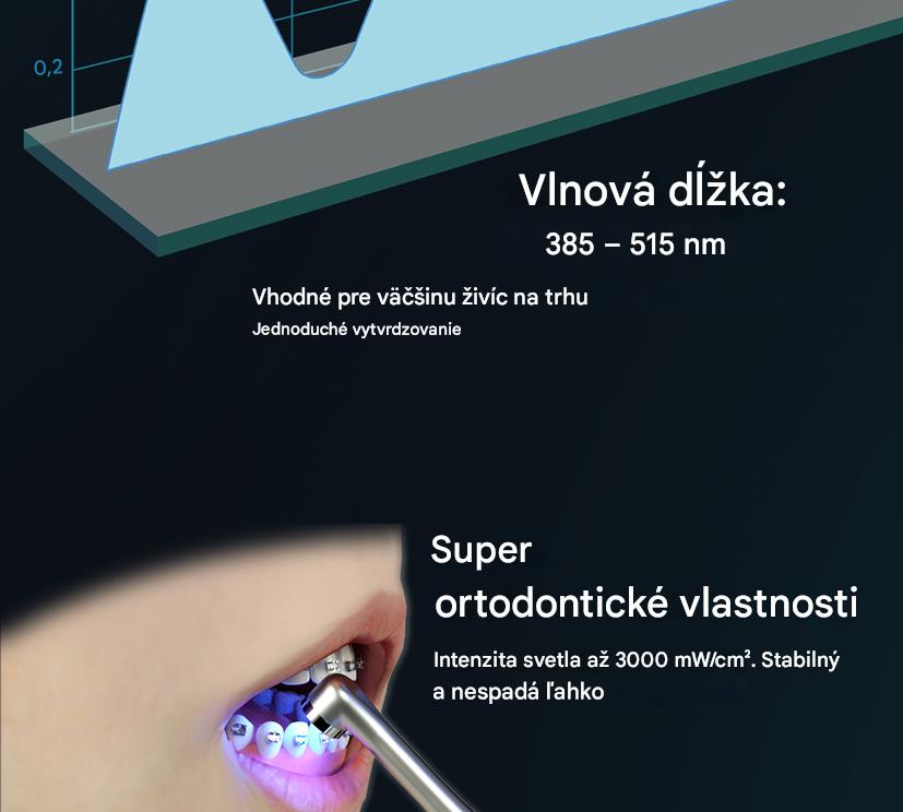 Vysoká intenzita svetla zabezpečuje dostatočnú penetráciu pri lepení ortodontických zámkov, čo vedie k silnejšej väzbe.