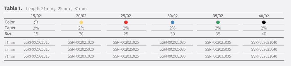 Dodáva sa v rôznych veľkostiach od #6, #8, #10, #15-#40, #45-80 a je k dispozícii v dĺžkach 21 mm, 25 mm a 31 mm.