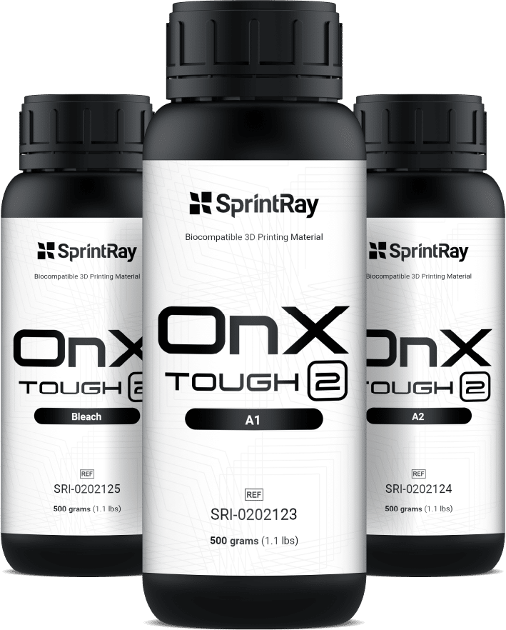Predstavujeme SprintRay OnX Tough 2, prelomovú živicu pre 3D tlač zubných materiálov, ktorá získala schválenie MDR a FDA na použitie pri výrobe fixných hybridných zubných protéz. Táto živica využíva špičkovú technológiu NanoFusion™, ktorá stanovila nový štandard v odvetví tým, že ponúka výnimočnú odolnosť a vizuálnu kvalitu. Výsledkom je pozoruhodne realistický vzhľad, ktorý sa veľmi podobá prirodzenej sklovine.
