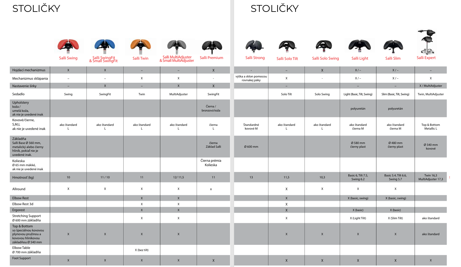 Unikátna sedlová stolička SALLI je skvelým riešením počas dlhého sedenia. Sedlová stolička SALLI s mechanizmom MULTI ADJUSTER je vyvinutá tak, aby umožnila nastaviť ľubovoľne sklon sedadla, zároveň aj šírku pri sedení, teda vzdialenosť medzi dvoma časťami sedadla. Stolička simuluje sedenie v jazdeckom sedle a udržiava chrbticu vzpriamenú. Vďaka konceptu MULTI ADJUSTER možno nastaviť sklon sedadla pri sedení a tak nastaviť najideálnejšiu a najkomfortnejšiu polohu bedier. Model MULTI ADJUSTER je vybavený pákou nastavenia šírky sedenia, t.j. šírka sedadla sa dá nastavovať. Ak chcete sedlovú stoličku s dynamickým sedadlom, ktorá sa hýbe do všetkých strán, vyberte si model SWING alebo SWING FIT.