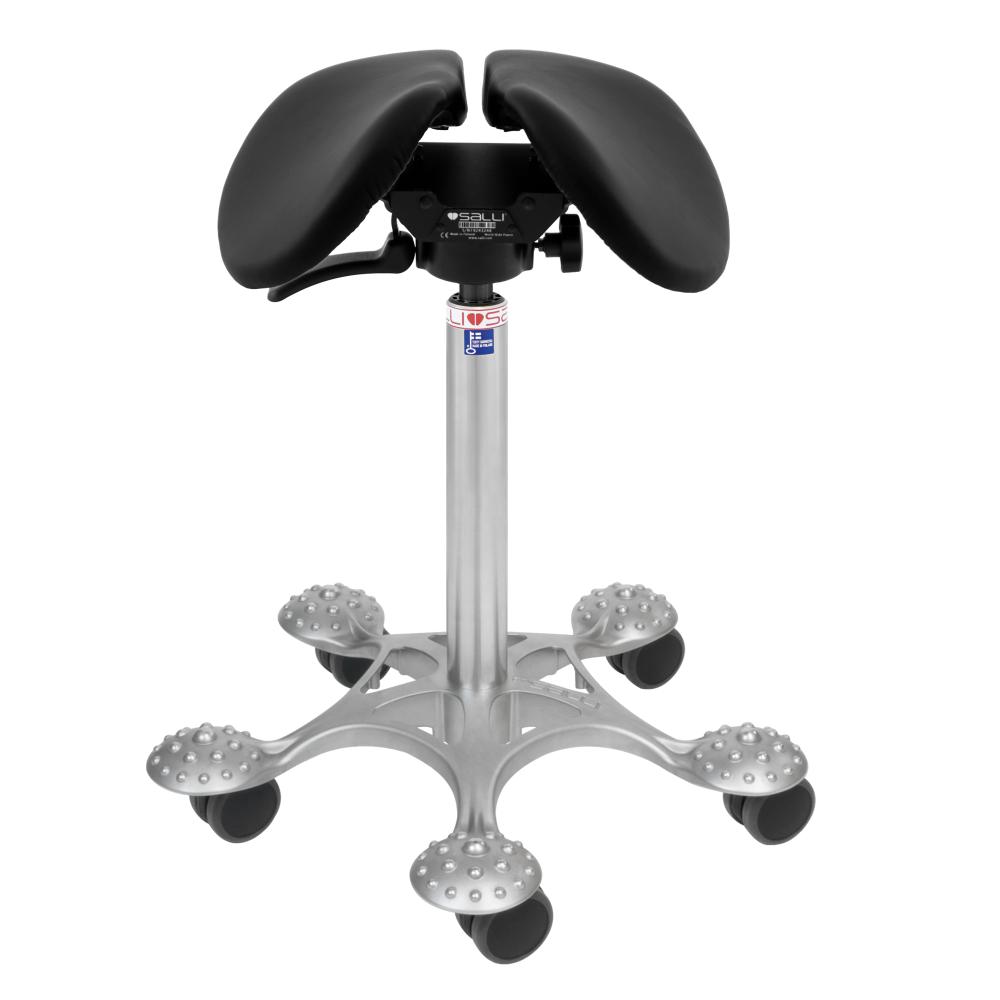 Stolička SALLI SWING využíva jedinečný mechanizmus, ktorý umožňuje nakloniť stoličku do akejkoľvek strany, šírka sedadla je pritom prednastavená. Dynamická sedlová stolička SALLI sa postará o zdravý chrbát.