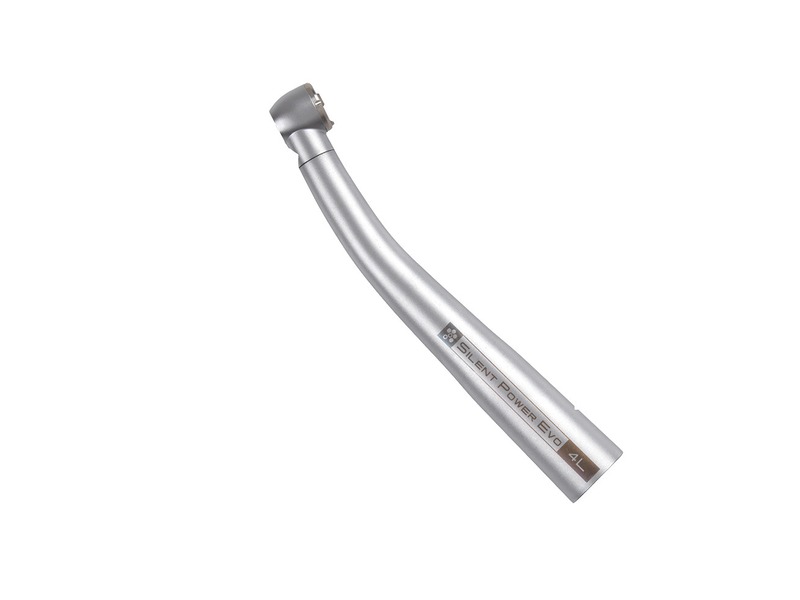 Silent Power Evo 4 L – K turbína, nerezová rukoväť, KAVO rýchle uchytenie typ Midwest, svetlo, keramické ložiská, 4 rozprašovacie trysky (4+4 dýzy), tlačidlo na uvoľnenie vrtáku, maximálna rýchlosť 350.000 rpm, priemerná hlučnosť level 57dB (A). Sterilizovateľná.