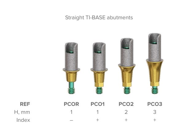 - PCOR bez šesťuholníka bol špeciálne navrhnutý pre mostíky na riešenie miernych odchýlok medzi viacerými implantátmi.